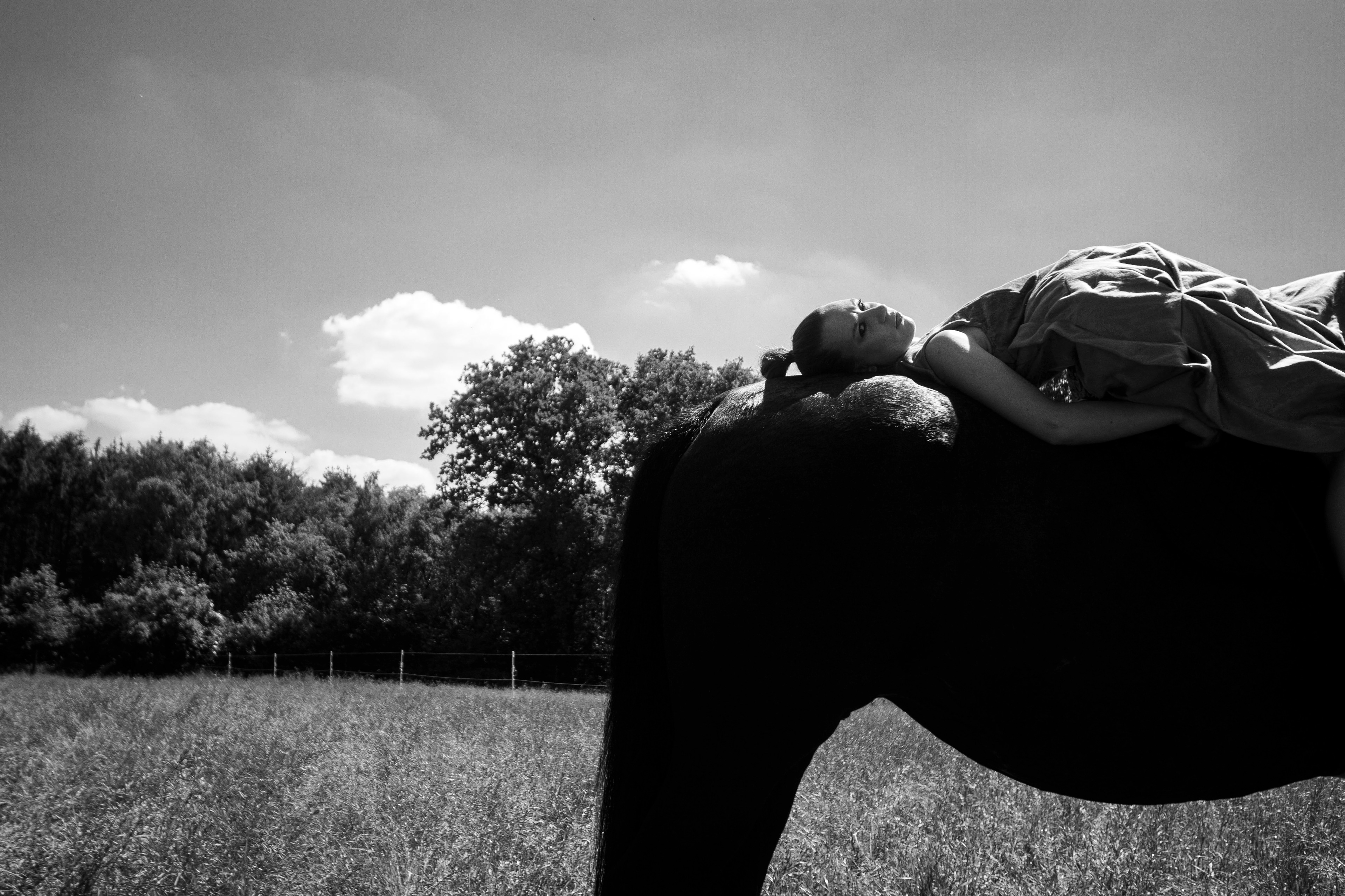 I was inspired by the riding gown for women with a side saddle and came across an image of this riding gown presented on two mannequins, one wearing the skirt and the other wearing the pants they used to wear underneath. It was seeing my insecurities haunt me like they were stuck in my head as a second person.